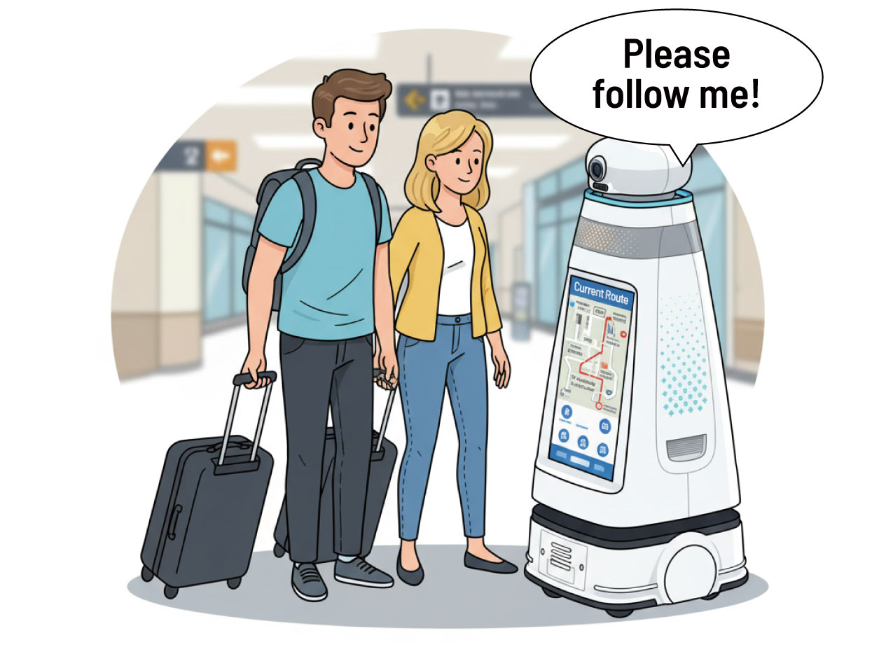 코가로보틱스는 인천국제공항공사를 위한 차세대 AI 서비스 로봇을 개발하여 도입을 앞두고 있습니다. 로봇들은 안내·순찰, 도슨트, 셀프체크인의 세 가지 유형으로 구성되며, AI 음성 대화와 자율주행 기술을 기반으로 공항 이용객에게 다양한 서비스를 제공합니다. 복잡한 공항 환경에서도 정밀하게 주행하며, 공항 안내부터 전시 해설, 체크인 업무까지 수행하여 인천공항의 디지털 전환을 선도할 예정입니다.